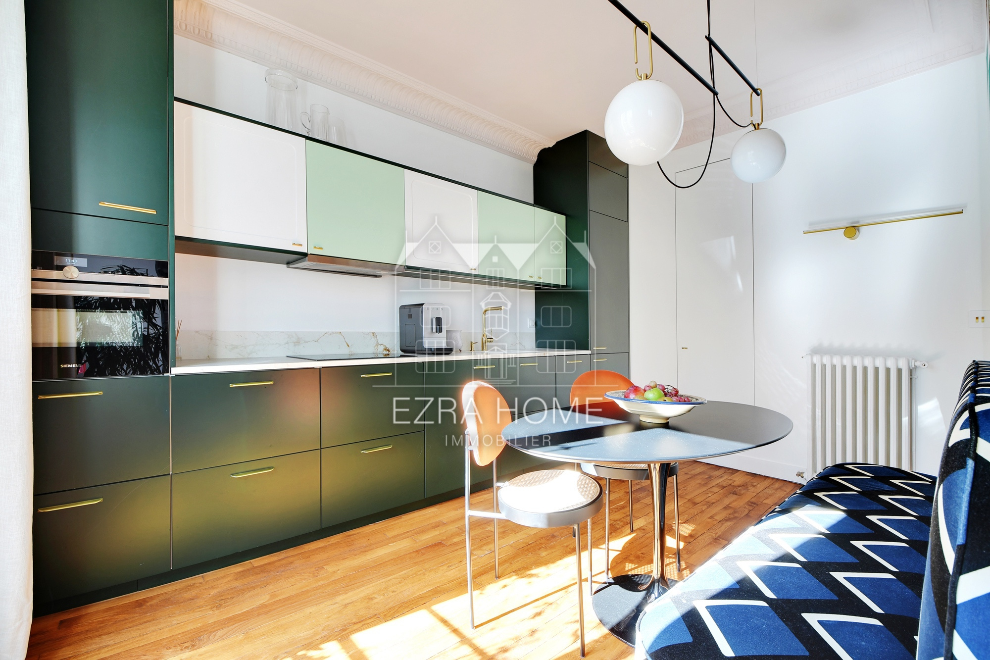 EZRA HOME vous propose en exclusivité un appartement de 53 m² situé au 3-eme étage avec ascenseur dans un bel immeuble Haussmannien, entièrement refait à neuf par un architecte de renom, utilisant des matériaux nobles et haut de gamme.