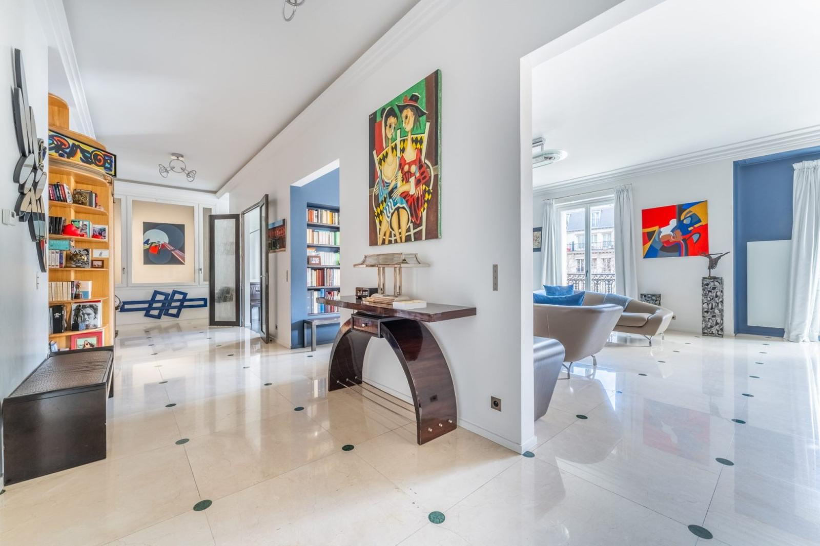 Au sein d’un immeuble Haussmannien de 1900 aux parties communes élégantes et de grand standing, cet appartement séduit par sa hauteur sous plafond de 3,30 m et par une distribution harmonieuse offrant une séparation naturelle entre les espaces de réception et la partie nuit.