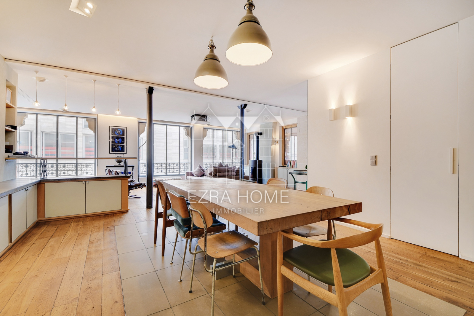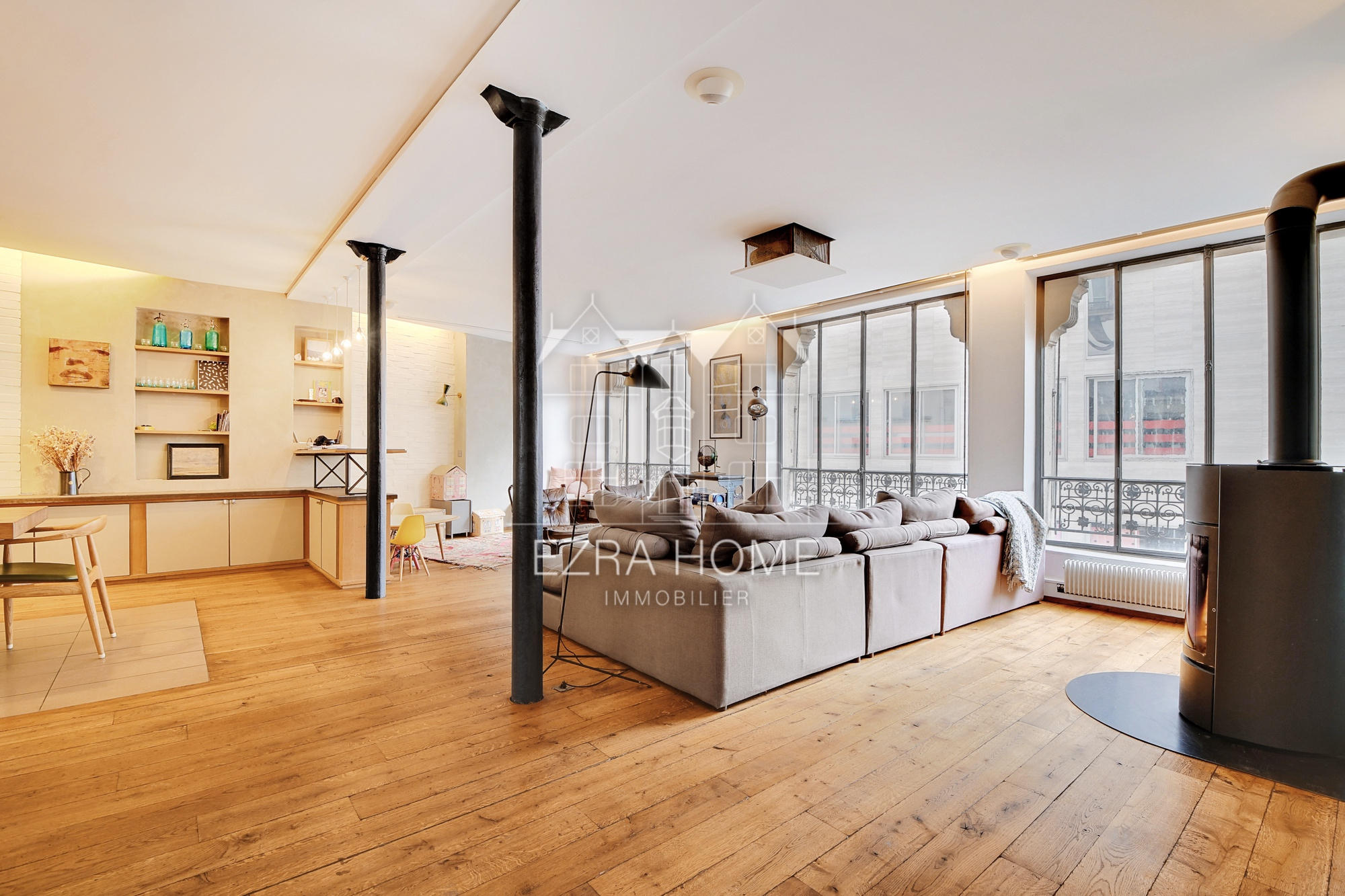 Vous serez séduits par les volumes généreux de la pièce de réception, illuminée par cinq grandes fenêtres style atelier. Le lieu dispose d'un poêle à feu ouvert et d'un système home-cinéma intégré. Cet espace au caractère loft, situé dans un environnement piétonnier, se trouve à deux pas de la rue Montorgueil et de ses commerces, cafés et restaurants.