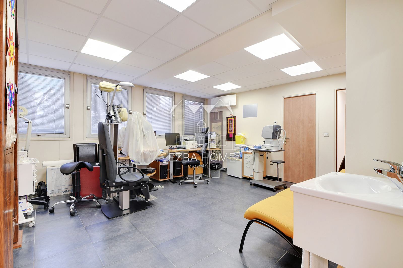 • 10 cabinets professionnels, actuellement loués par des praticiens de diverses spécialités (ophtalmologue, kinésithérapeute, gynécologue, pédiatre, etc.)