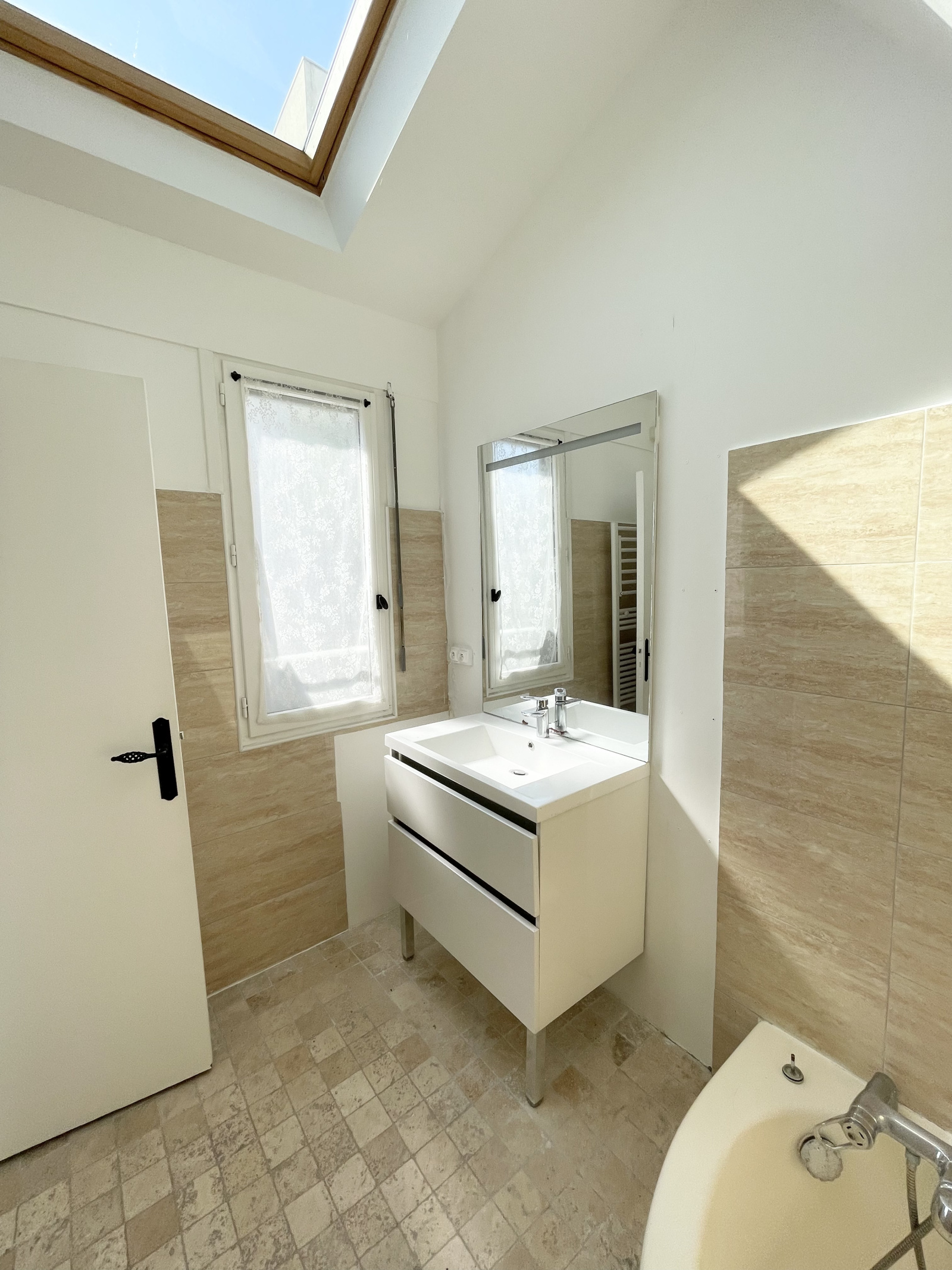 •Suite à l’Étage : À l’étage, la chambre est confortable et lumineuse, grâce à une verrière qui laisse entrer la lumière. Elle est agrémentée d’une salle de bains élégante et de WC séparés pour plus de confort.